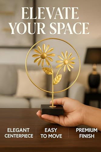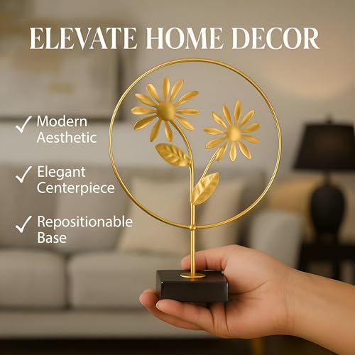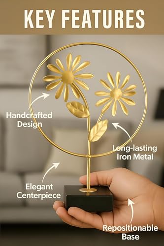 Generic - ديكور منزلي - زهرة ذهبية معدنية أنيقة لتعزيز الديكور الداخلي الخاص بك مع تصميم حديد مصنوع يدويًا وقاعدة قابلة لتغيير موضعها، لمسة نهائية فاخرة