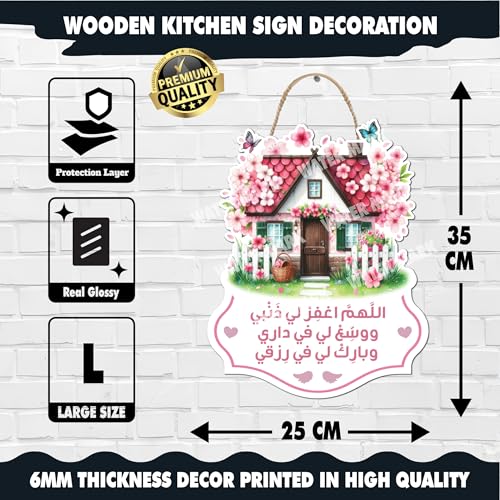 - تصميم مجسم فريد – اللوحة تأتي بشكل منزل فلوري مكتوب عليها اية قرأنية او دعاء بتفاصيل ثلاثية الأبعاد تضفي عمقًا وأناقة على ديكور المطبخ