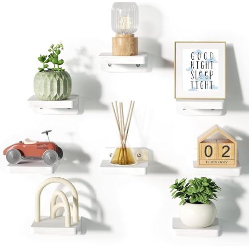 Home Decor Lounge - أرفف عائمة من الخشب صغيرة للحائط مزخرفة تثبت على الحائط لغرفة النوم وغرفة المعيشة والحمام من هوم ديكور لاونج، مجموعة من 4 أرفف، لون أبيض