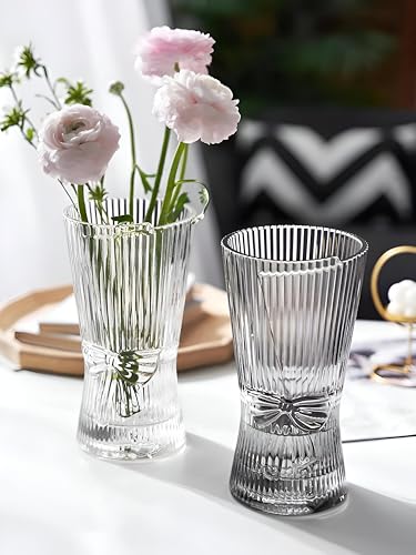 Generic - فازة ديكورية المنزل، فازة زجاجية مزينة بفيونكة أنيقة، مزهرية مصنوعة من زجاج شفاف لإضافة لمسة أناقة أنيقة للمكاتب أو مناطق تناول الطعام