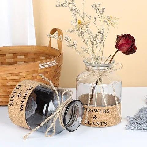 Generic - مزهرية ديكور المنزل - شفافة زجاجية أنيقة مقترنة بحبل وملصق زهور ونباتات، تمزج بين الجمال الريفي والرقي لعرض الزهور الخالدة أو ترتيبات الطاولات