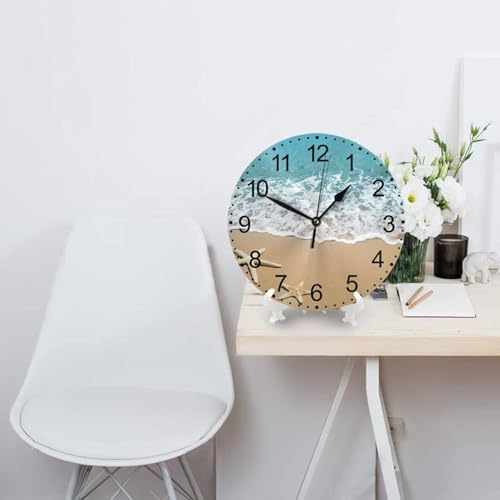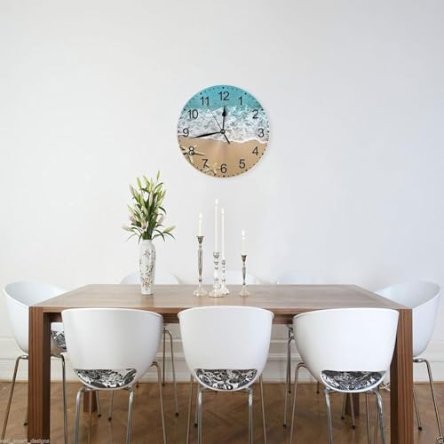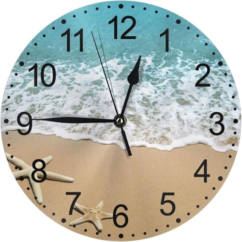 Generic - ساعة حائط لديكور المنزل بتصميم صدف وطبعة تعبر عن الصيف الكترونية صامتة بلا تكتكة دائرية للحمام وغرفة النوم والمطبخ وغرفة المعيشة والمكتب والمدرسة، 30 سم