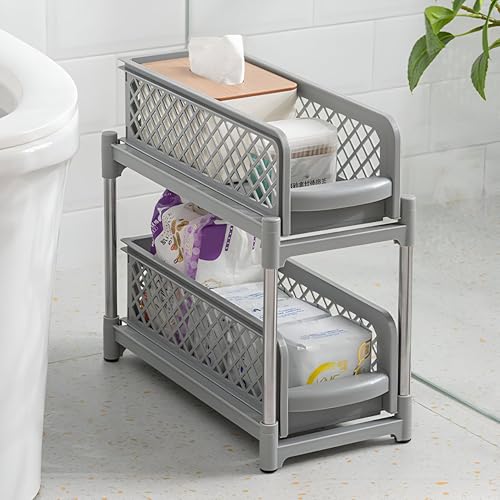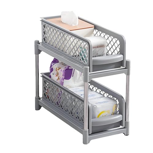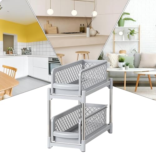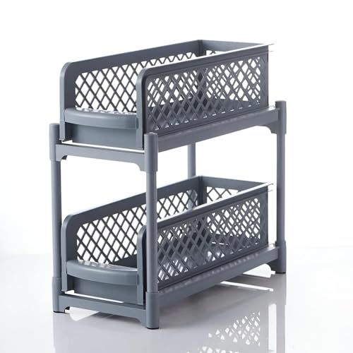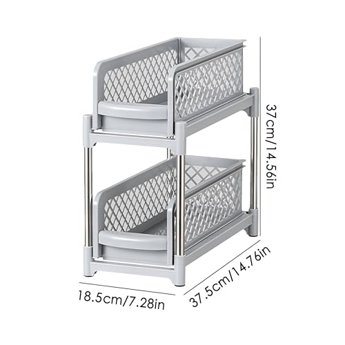 Generic - منظم أدراج منزلي - درج مطبخ متعدد الاستخدامات يتميز بطبقات مزدوجة ونظام انزلاق سلس لزيادة كفاءة التخزين والحفاظ على مطبخك مرتبا وأنيقا، بلون رمادي