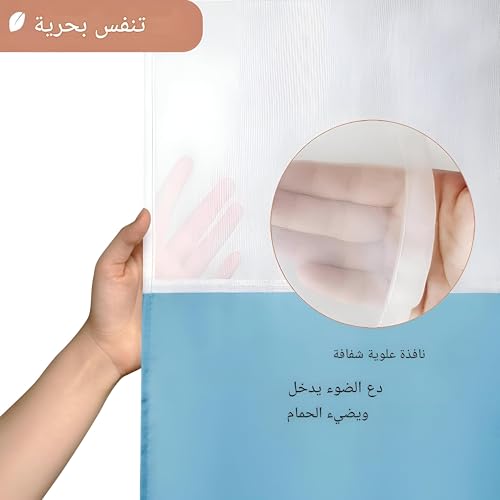 - تتميز ستارة الحمام هذه بتصميم نافذة علوية شفافة، مما يسمح بنفاذ الضوء الطبيعي مع الحفاظ على الخصوصية. تعزز هذه الميزة الفريدة دوران الهواء، مما يصنع جوًا يشبه المنتجع الصحي يحول تجربة الاستحمام الخاصة بك إلى ملاذ مريح.