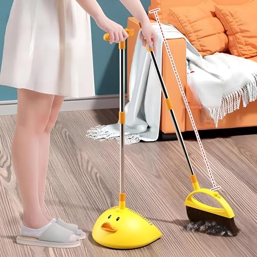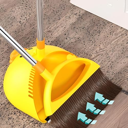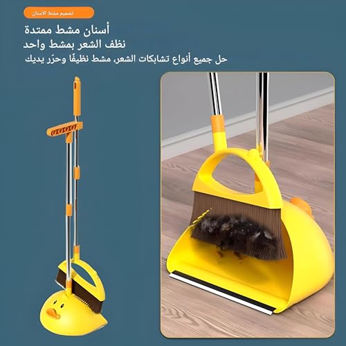Generic - أساسيات المنزل - مجموعة مكنسة وجاروف بتصميم بطة صفراء لطيفة للتنظيف في المنزل والمطبخ والمكتب والردهة، تتميز بشعيرات قوية ومقبض ممتد من الفولاذ المقاوم للصدأ لسهولة الاستخدام