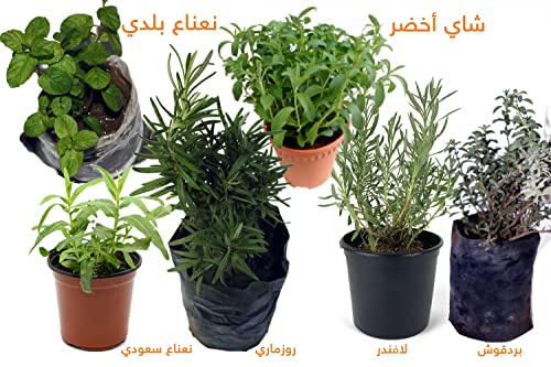 Generic - مجموعة شتلات الزراعة المنزلية، نبات الشاي الأخضر، البردقوش، الشتلات، النعناع السعودي، الروزماري، اللافندر