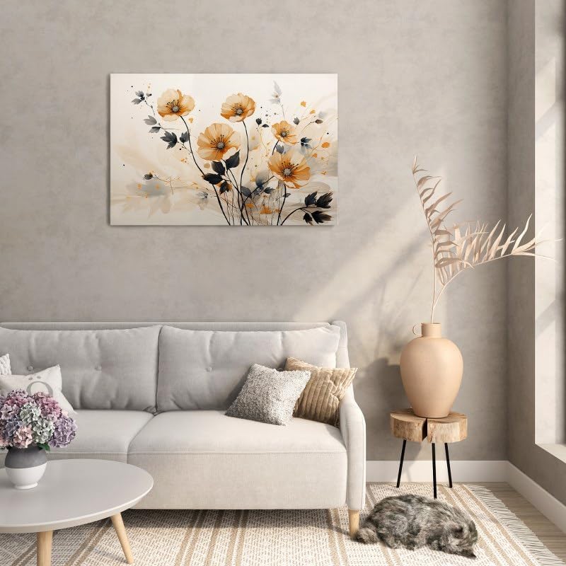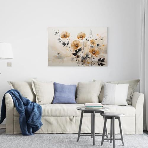 Home Gallery - لوحة فنية جدارية تجريدية عتيقة زهور وفروع خضراء وطيور ذهبية حديثة مطبوعة من القماش مقاس 90 × 60 من هوم جالاري