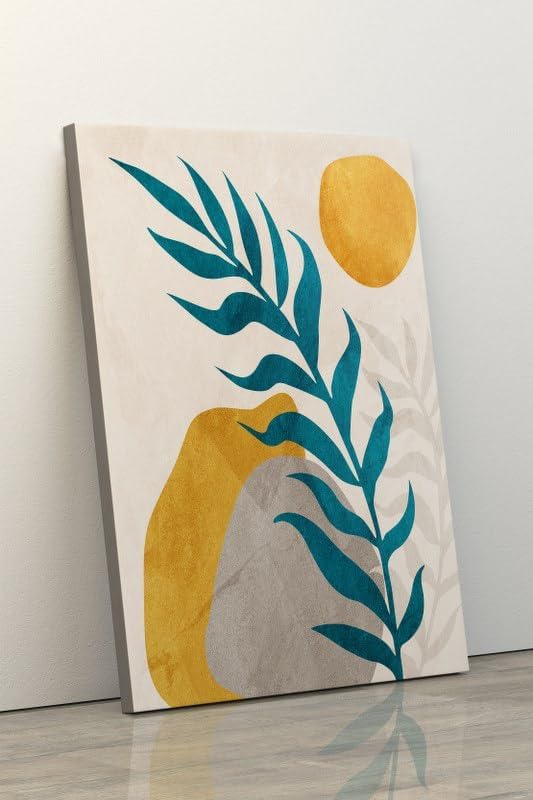 Home Gallery - لوحة فنية جدارية قماشية مطبوعة بأوراق نباتية تجريدية مقاس 60×40 من هوم جاليري