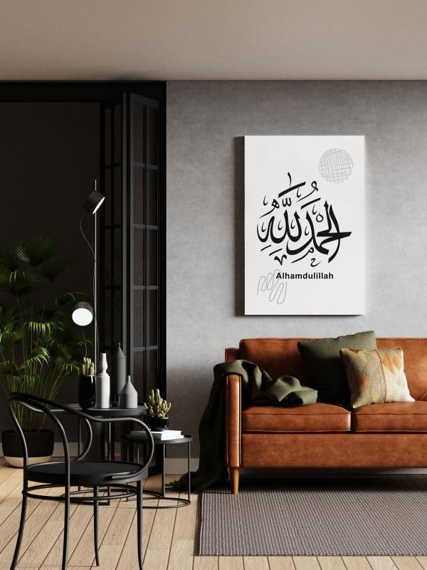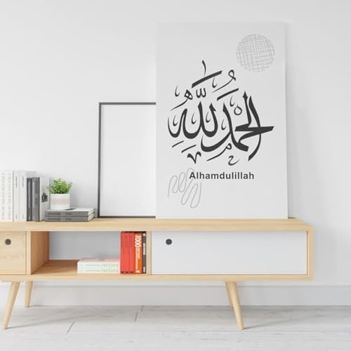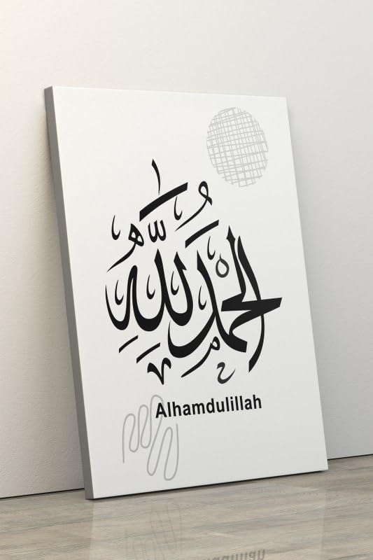 Home Gallery - بوستر الحمد الله، لوحة فنية قماشية مطبوعة مقاس 90×60 سم، أبيض