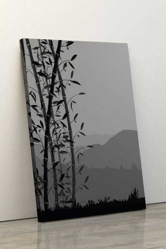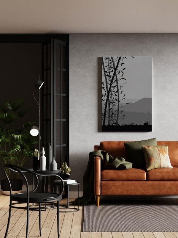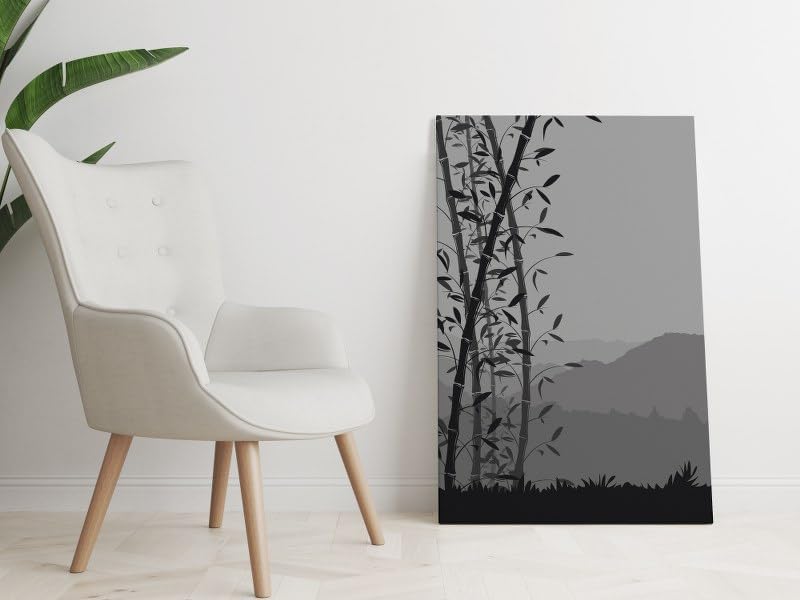 Home Gallery - لوحة فنية جدارية قماشية مطبوعة بنمط غابة الخيزران باللون الرمادي من هوم جالاري، مقاس 120×80