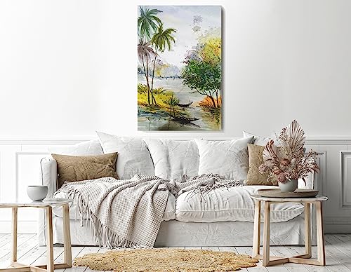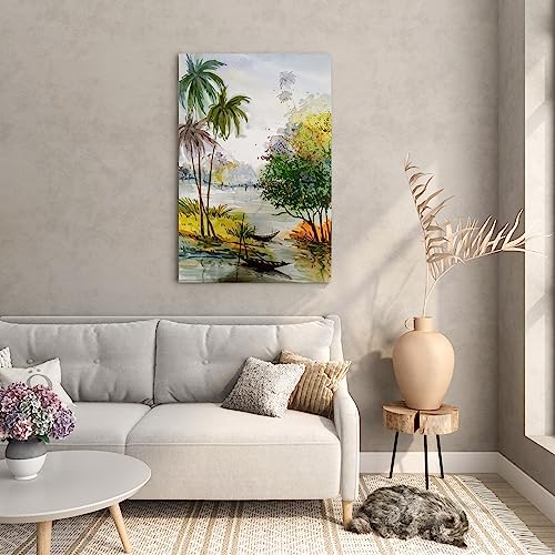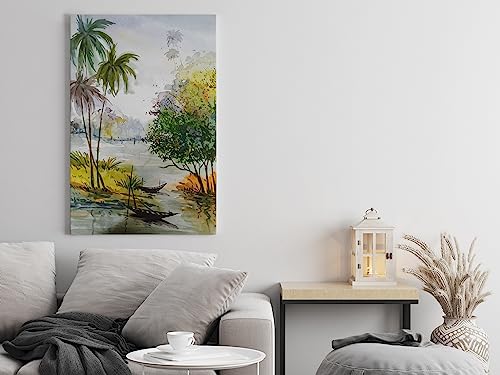 Home Gallery - لوحة فنية جدارية من القماش مرسومة باليد بالوان مائية جميلة مقاس 90 × 60 سم من هوم جالاري، أخضر