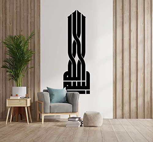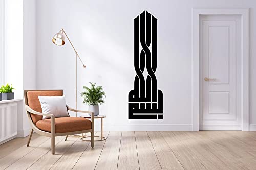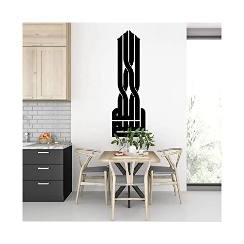 Home Gallery - ستيكر لاصق فني للحائط مطبوع عليه عبارة «بسم الله» بالخط الكوفي الطويل من هوم جاليري، مقاس 120×40 سم، لون اسود