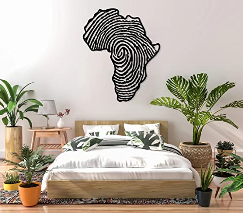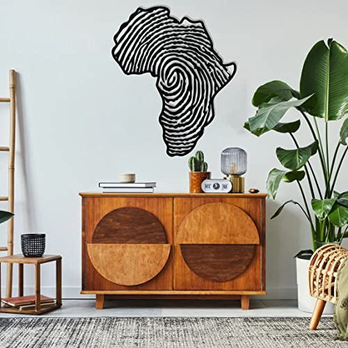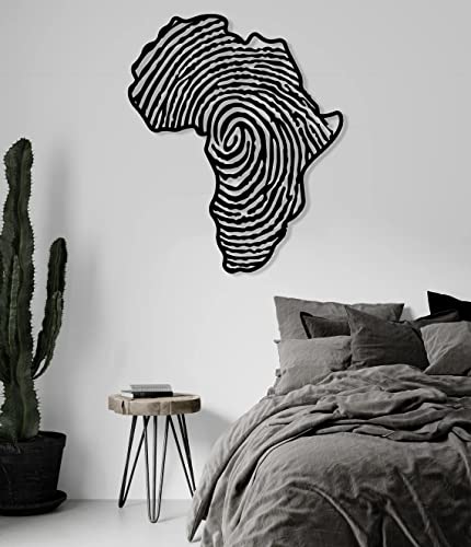 Home Gallery - تابلوه حائط مقاس 80 × 60 مصنوع من الخشب بتصميم خريطة افريقيا على شكل بصمة، أسود