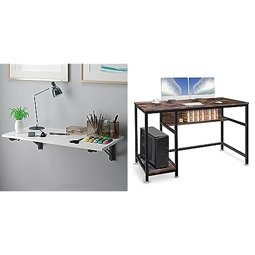 Home Gallery - مكتب قابل للطي يثبت على الحائط 120 × 60 سم، لون ابيض × اسود + مكتب كمبيوتر من اوتوكسيل، طاولة 120 سم مع رف تخزين