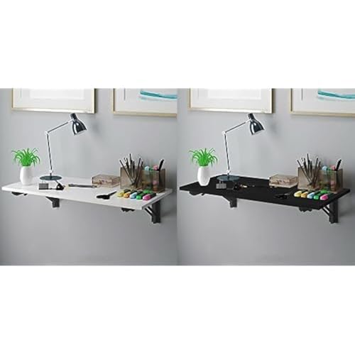 Home Gallery - مجموعة مكونة من حامل مكتب قابل للطي يثبت على الحائط مقاس 120 × 60 سم بلون ابيض اسود وحامل