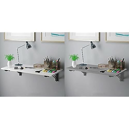 Home Gallery - هوم جالاري مجموعة من مكتب قابل للطي يثبت على الحائط 120 × 60 سم ابيض اسود + رمادي