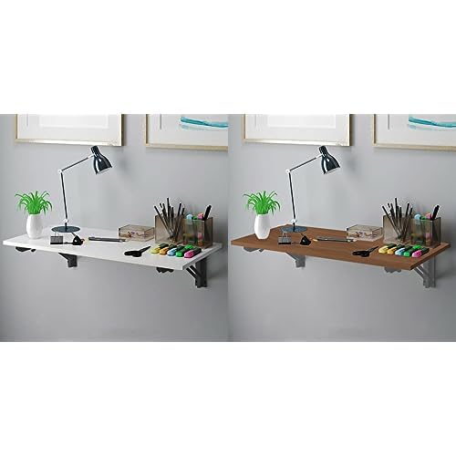 Home Gallery - مجموعة مكتب قابل للطي يثبت على الحائط مقاس 120 × 60 سم بلون ابيض اسود + 90 50 بني رمادي خشب من هوم جاليرى