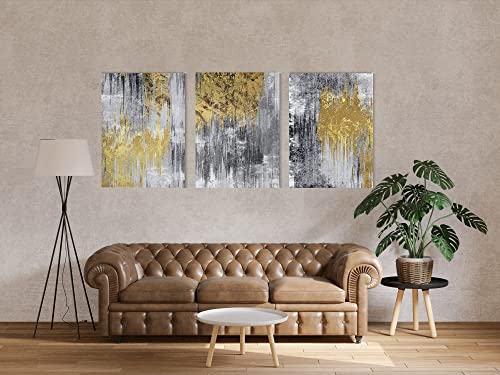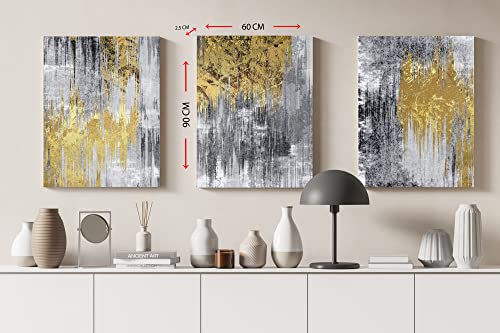 Home Gallery - تابلوه كانفاس للحائط، مجموعة من ثلاث بورتريهات تجريدية باطار لثلاث خلفيات تتميز بالبساطة. مع نمط فني هندسي، بعرض 90 × ارتفاع 60 × عمق 2 سم، رمادي