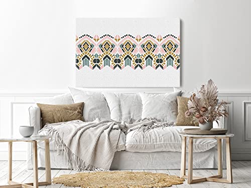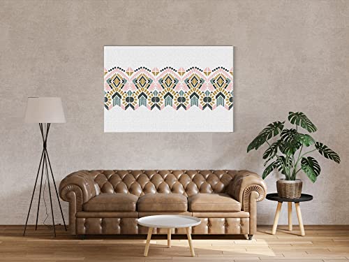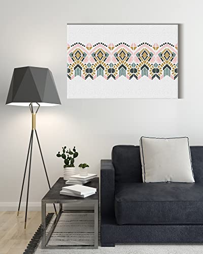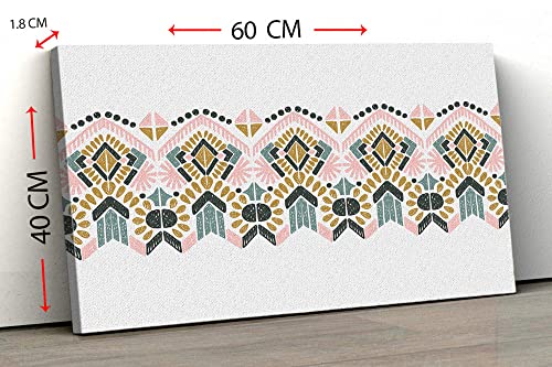 Home Gallery - لوحة فنية جدارية كانفس، صورة بشنبر تجريدية لزخارف ايكات الشعبية الهندسية 60 × 40 سم، من هوم جالاري، أبيض
