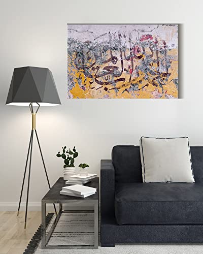 Home Gallery - لوحة فنية جدارية من القماش، صورة مؤطرة طولية تجريدية للثناء على الله 60 × 40 سم، رمادي