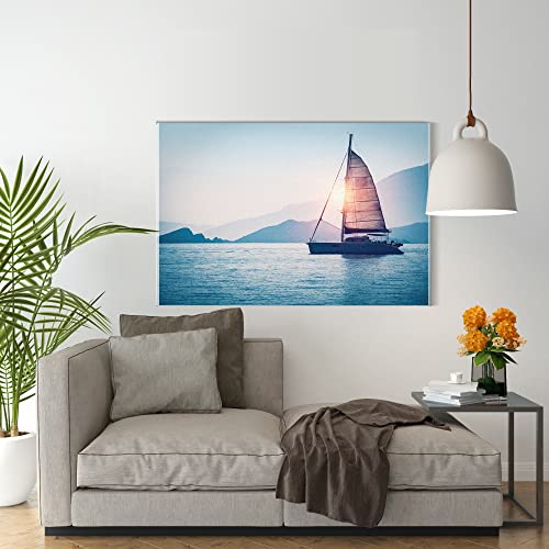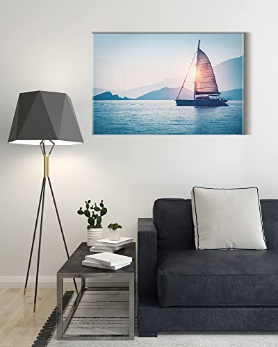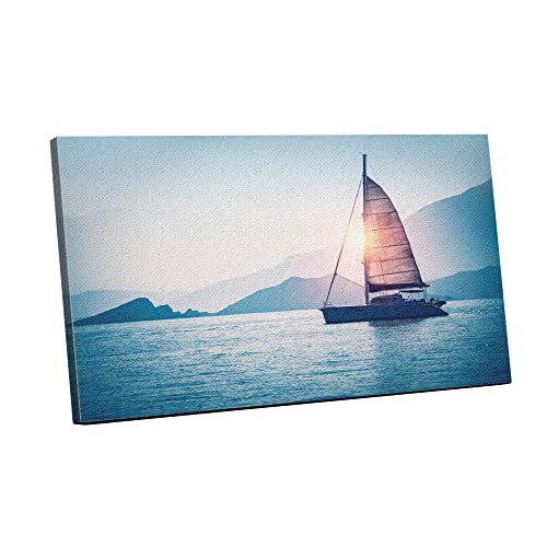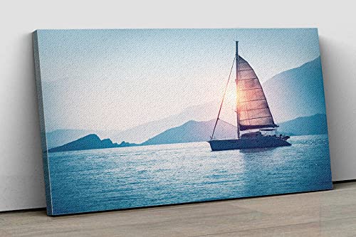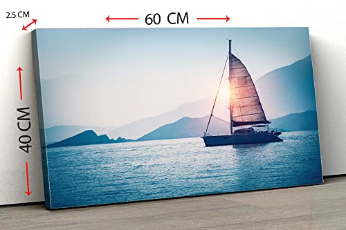 Home Gallery - تابلوه حائط كانفاس فنية مؤطرة برسم تجريدي لقارب شراعي في البحر في ضوء شمس المساء من هوم جاليري، 60 عرض × 40 ارتفاع × 2 عمق