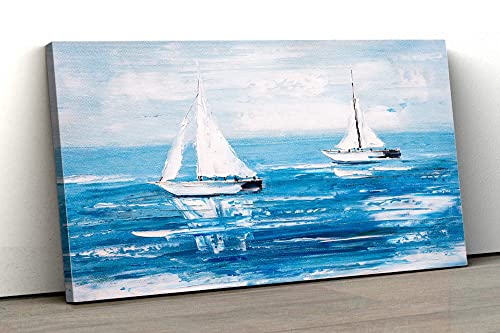 Home Gallery - لوحة فنية جدارية من القماش، صورة باطار تجريدية لقوارب الابحار 90 × 60 سم، أزرق