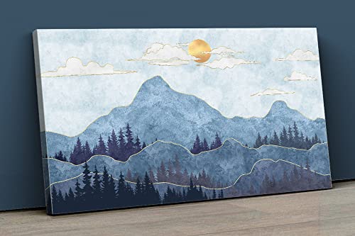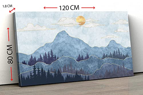 Home Gallery - تابلوه من قماش الكانفاس، ملصقات مؤطرة تجريدية لصور ظلية للجبال مع اشجار 120 × 80 سم، أزرق