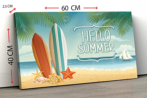 Home Gallery - لوحة من القماش للتعليق على الحائط، صورة تجريدية للصيف مع الواح ركوب الامواج 60 عرض × 40 ارتفاع × 2 عمق، أزرق