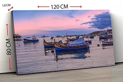 Home Gallery - لوحة فنية جدارية من القماش، صورة مؤطرة تجريدية لقوارب مالطية تقليدية 120 × 80 سم، أزرق