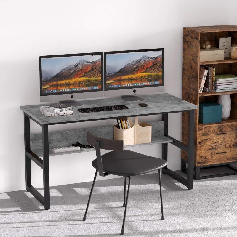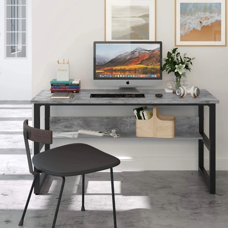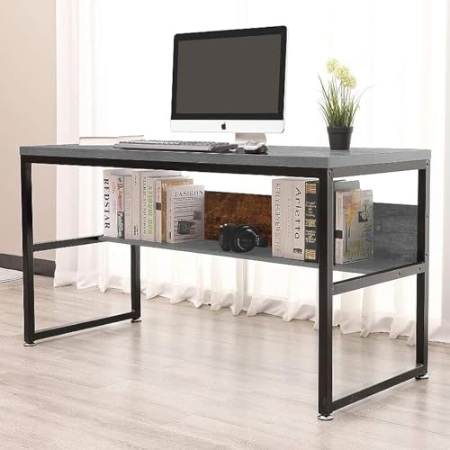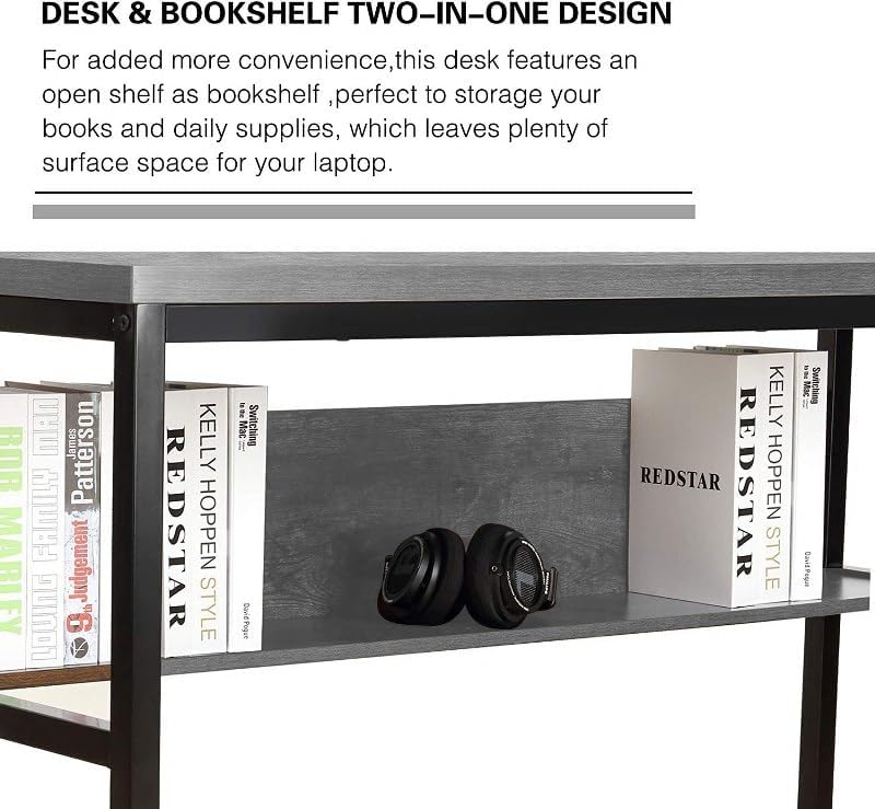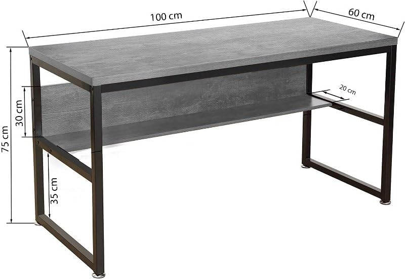 Home Gallery - مكتب كمبيوتر مع رف كتب سفلي من هوم جاليري، لون رمادي، مقاس 1 م × 60 سم × 75 سم