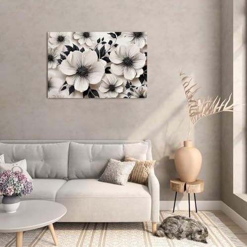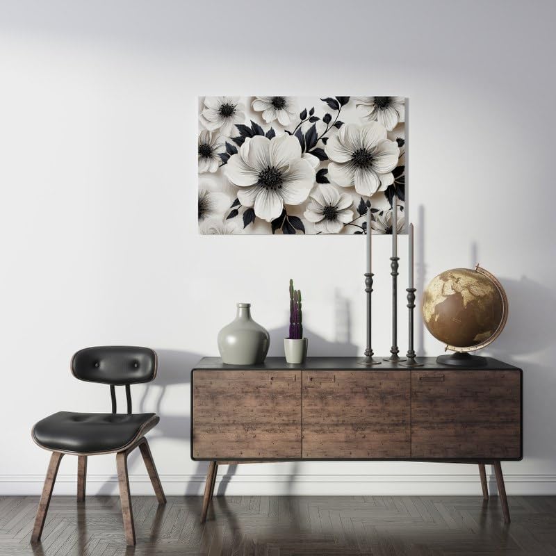 Home Gallery - لوحة فنية جدارية قماشية بطباعة زهور داكنة مقاس 60×40، من هوم جالاري، أبيض
