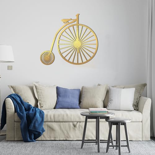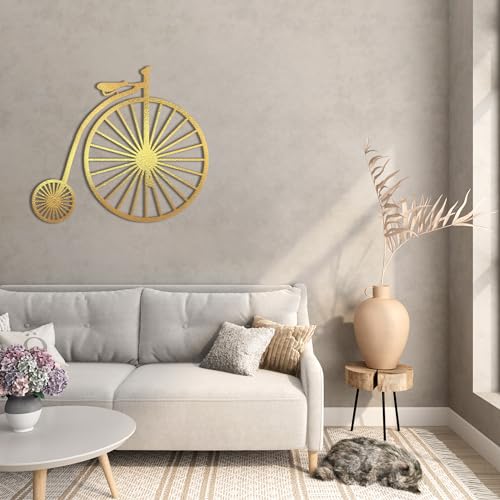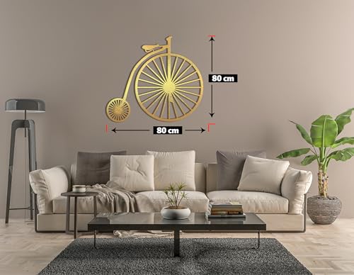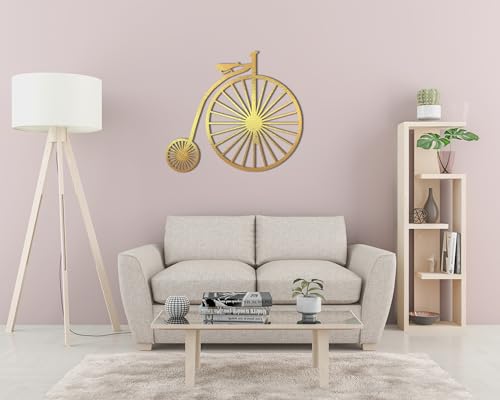 Home Gallery - تابلوه حائط من الخشب بتصميم دراجة كلاسيكية للديكور من هوم جاليري، 80 × 80 سم، لون ذهلب، ذهبي
