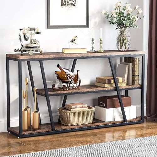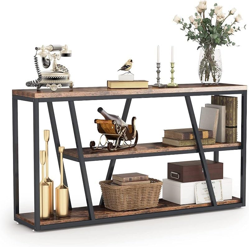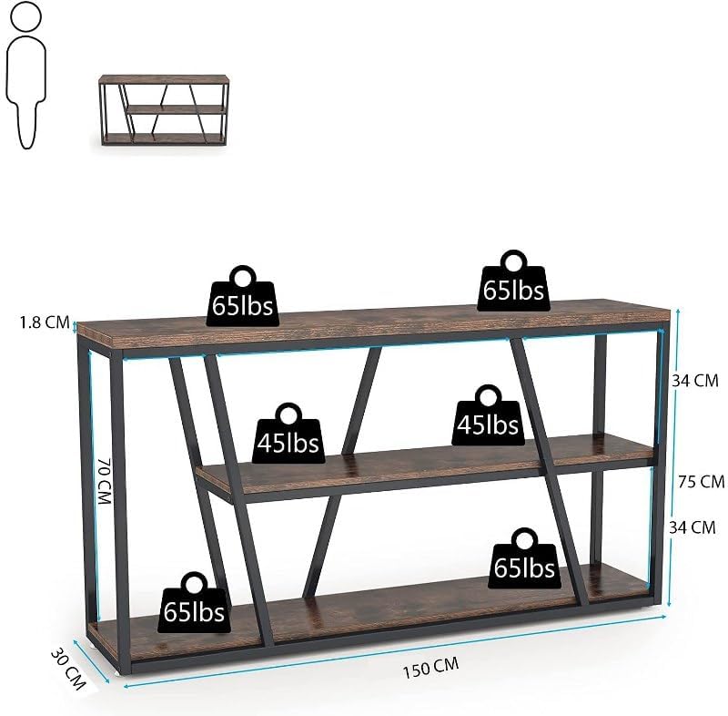Home Gallery - طاولة مدخل من 3 طبقات مع مساحة تخزين من هوم جاليري، مقاس 1.50 متر×75 سم×30 سم، لون بني