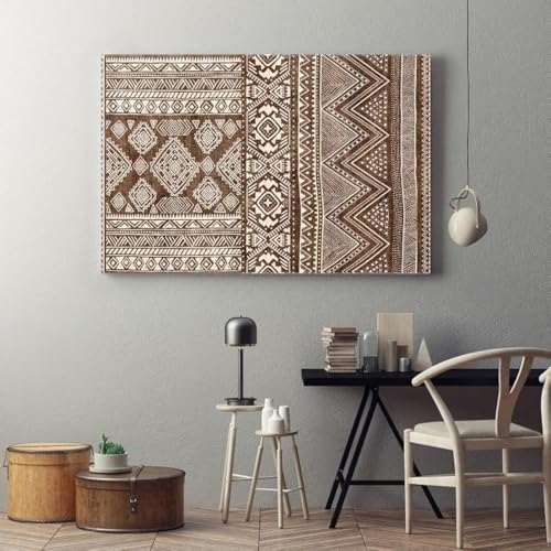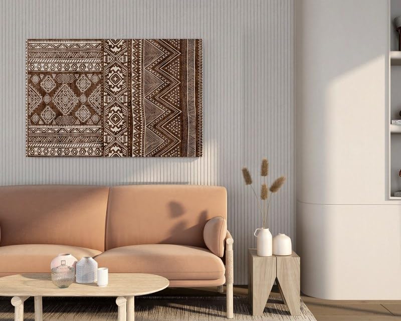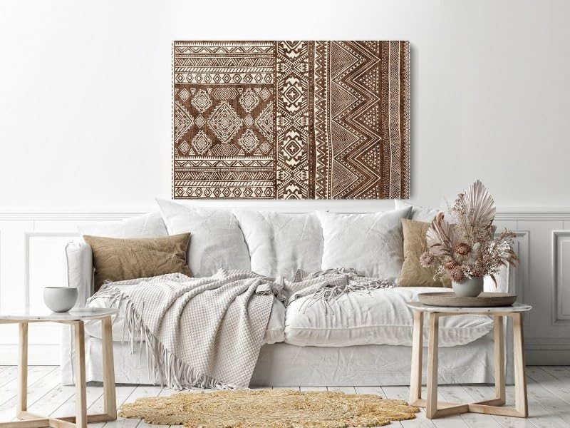 Home Gallery - لوحة فنية جدارية مطبوعة على القماش بتصميم هندسي ايكات ازتيك من هوم جالاري، مقاس 90×60 سم، بني