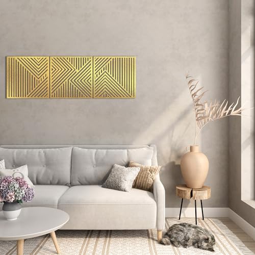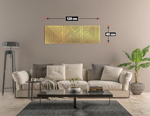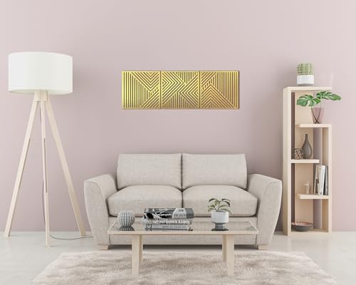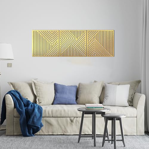 - هوم جالاري لوحة فنية جدارية خشبية هندسية - مجموعة من 3 لوحات عصرية لكل منها 40 × 40 سم، لون ذهبي