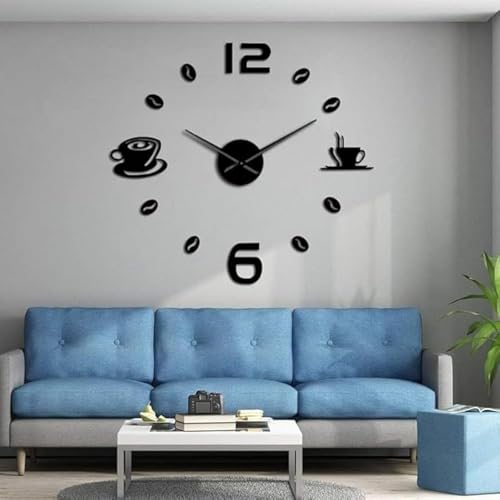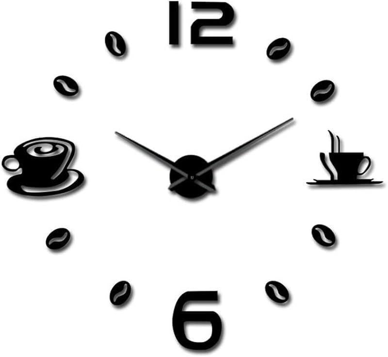 Home Gallery - ساعة حائط عملاقة ثلاثية الأبعاد مع نمط كوب قهوة، خشب، أسود، تناظري