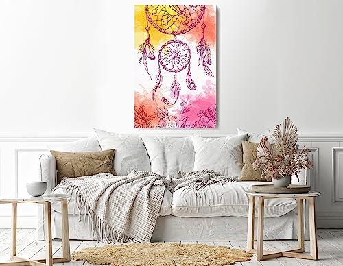 Home Gallery - لوحة فنية جدارية من القماش مطبوع عليها صورة دريم كاتشر مقاس 90 × 60 سم من هوم جالاري، زهري