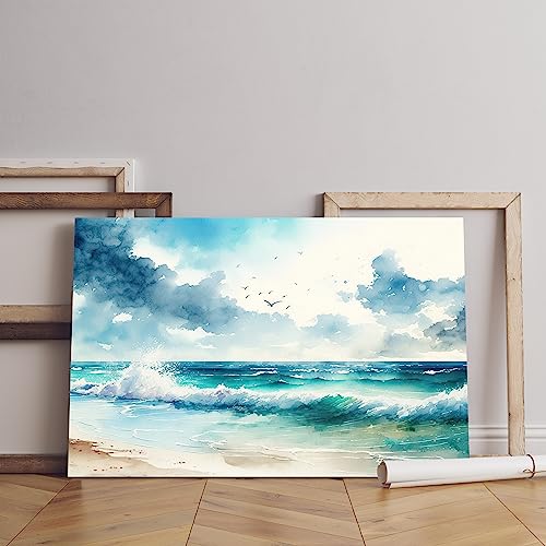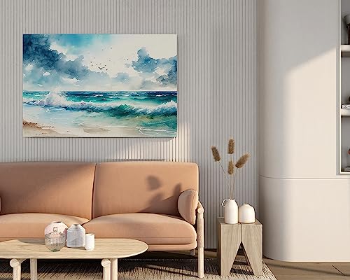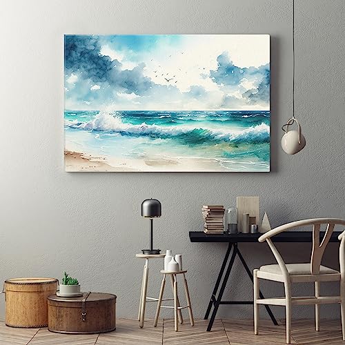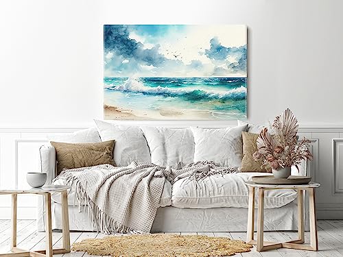 Home Gallery - لوحة فنية جدارية من القماش مطبوع عليها رسومات بحرية بالوان مائية من هوم جاليري، مقاس 90×60 سم، أزرق