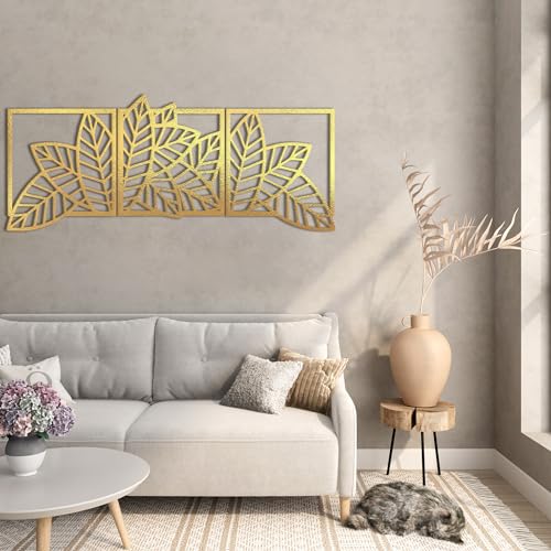 Home Gallery - لوحات جدارية من هوم جاليري، ديكور معلق على الحائط لغرفة الطعام، تصميم أوراق شجر ذهبية، مقاس 59.9 × 180.1 سم، مجموعة من 4 قطع