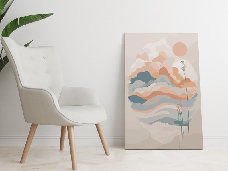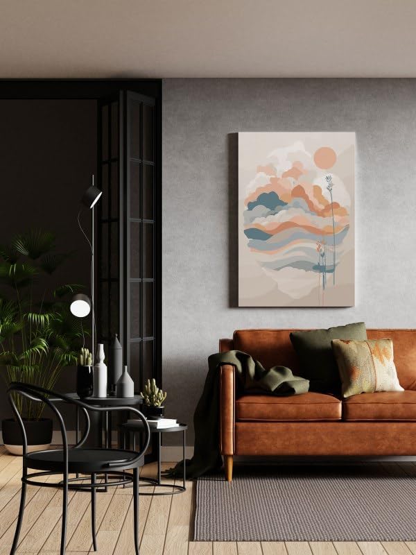 - لوحة فنية قماشية مطبوعة بتصميم شروق الشمس بأسلوب منتصف القرن الحديث من هوم جاليري مقاس 60×40 سم