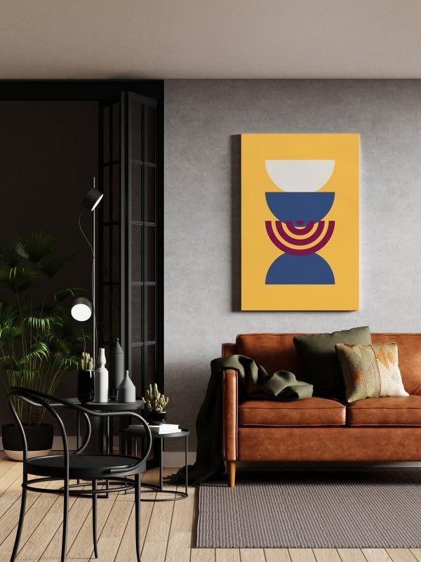 Home Gallery - لوحة فنية جدارية عصرية بنمط منتصف القرن من القماش بطباعة رترو مقاس 90 × 60، أزرق