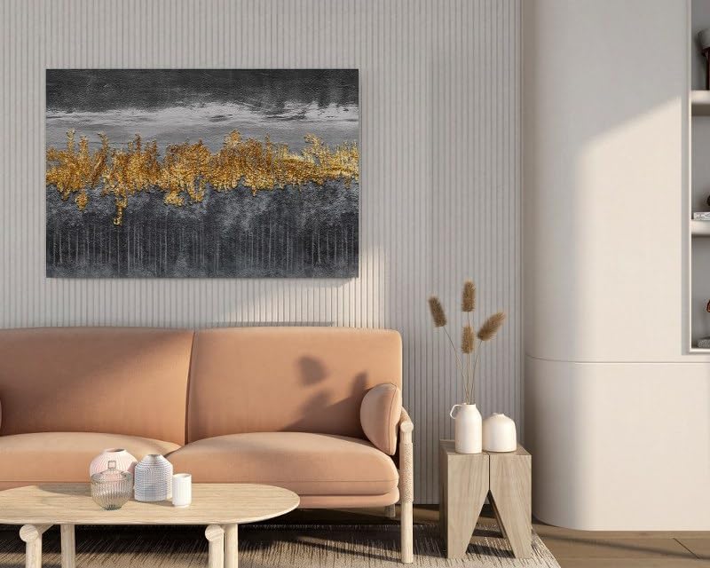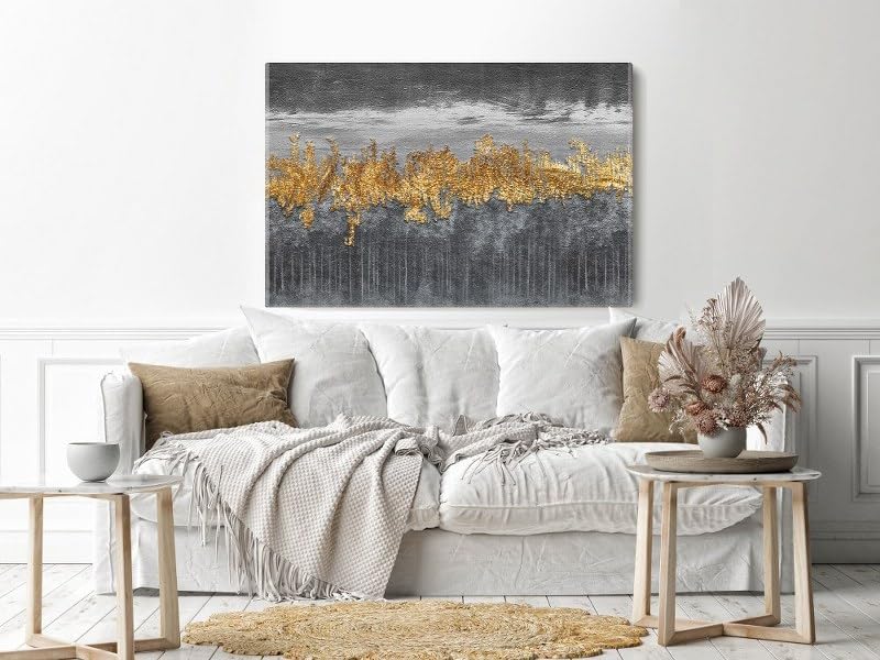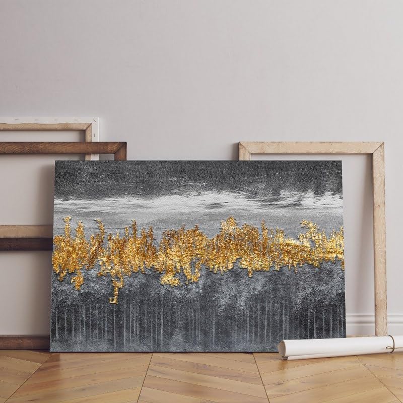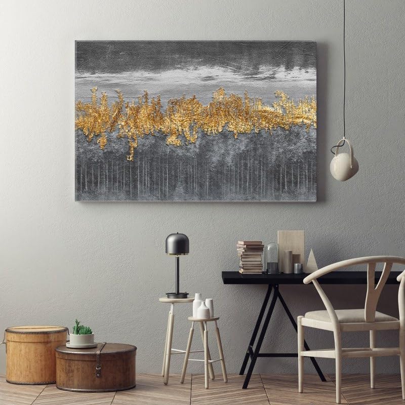 Home Gallery - لوحة فنية جدارية مطبوعة على القماش بتصميم تجريدي من هوم جالاري، لون ذهبي، مقاس 90×60 سم