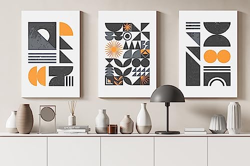 Home Gallery - مجموعة بوسترات باوهاوس من هوم جالاري بتصميم عصري مطبوعة على القماش للحائط مقاس 90 × 60 سم، برتقالي