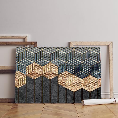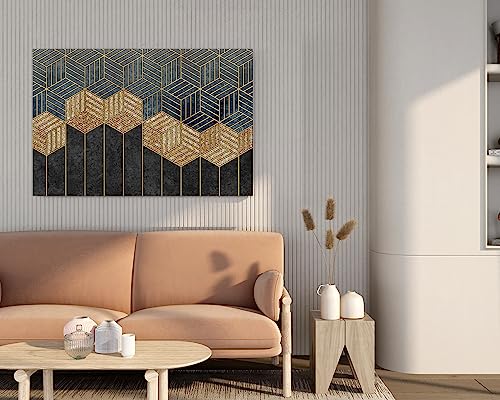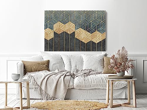 Home Gallery - لوحة فنية للحائط من القماش بتصميم هندسي بسيط وعصري هوم جالاري لون ذهبي - مقاس 90× 60 سم