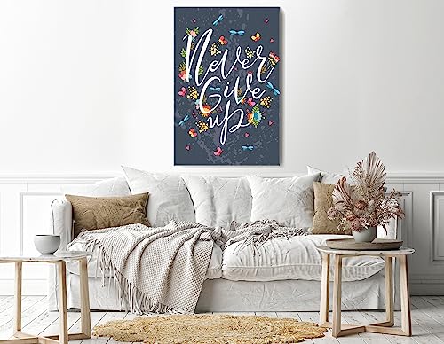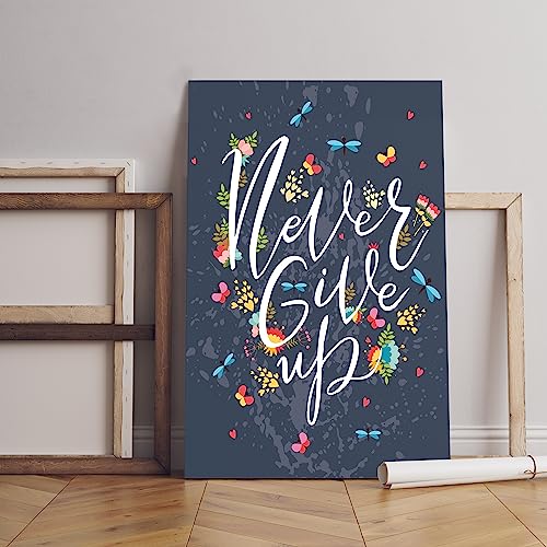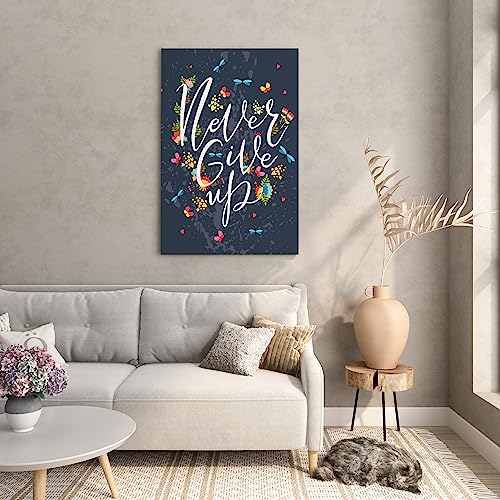 Home Gallery - لوحة فنية جدارية من القماش مطبوع عليها عبارة «Never Give up» ببطاقة بريدية تحفيزية مقاس 90×60 من هوم جالاري