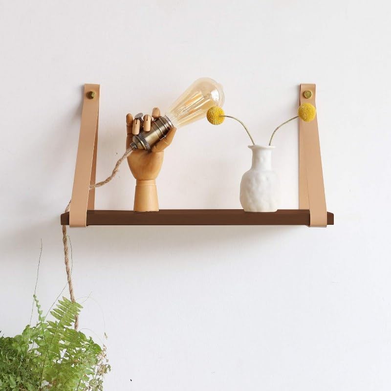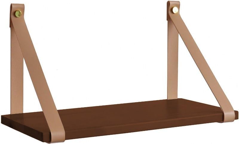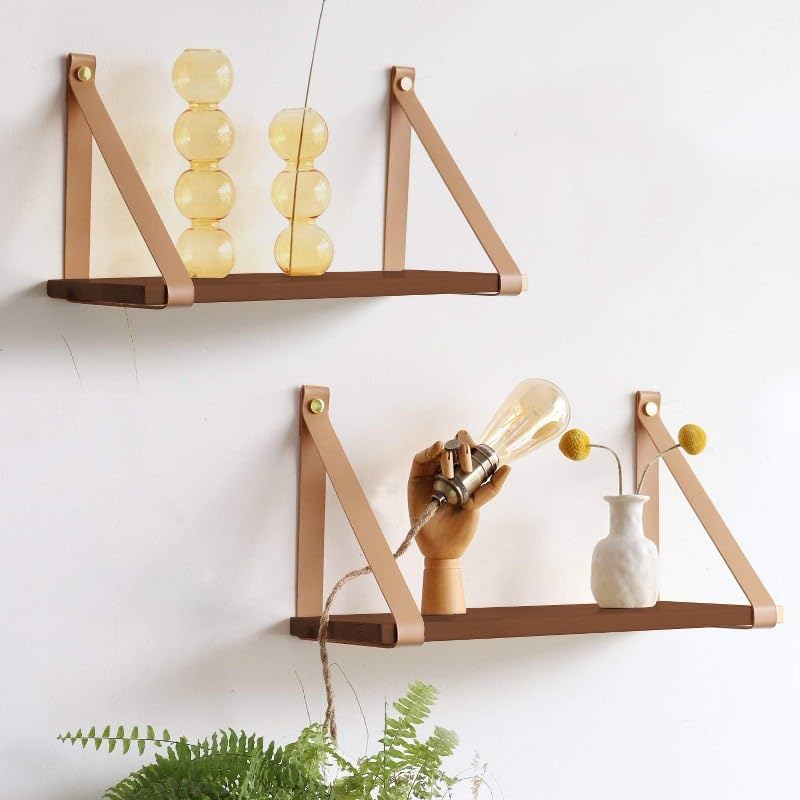 • أرفف معلقة على الحائط بتصميم بسيط وأنيق لتحسين منزلك مع أحزمة من الجلد الصناعي السميك والقوي