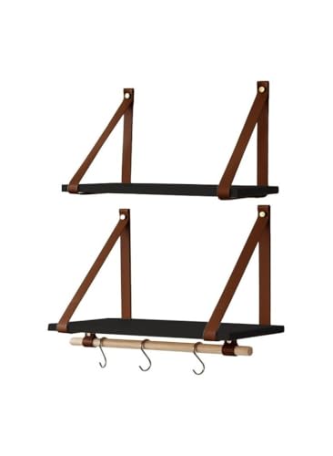 Generic - ارفف معلقة على الحائط بحزام من الجلد الصناعي بلون بني من هوم جاليري