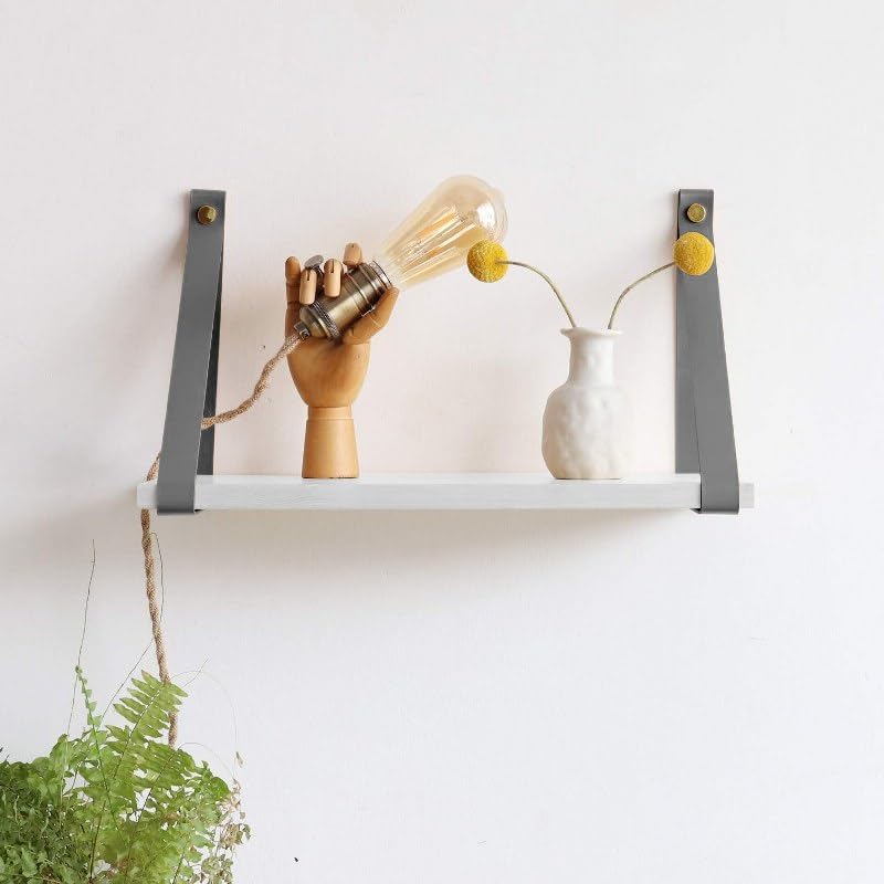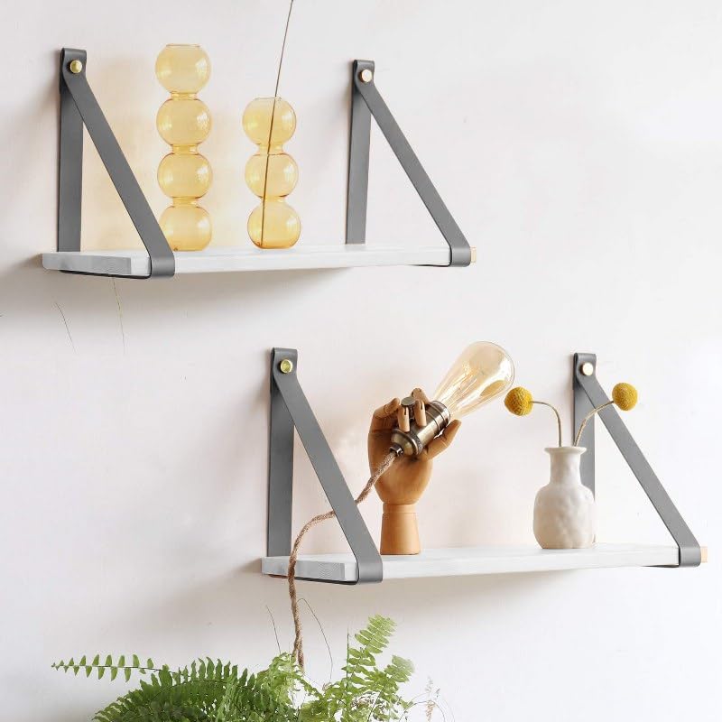 - أرفف معلقة على الحائط بتصميم بسيط وأنيق لتحسين منزلك مع أحزمة من الجلد الصناعي السميك والقوي.