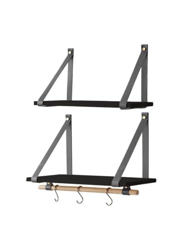 Generic - ارفف معلقة على الحائط بحزام من الجلد الصناعي بلون رمادي من هوم جاليري