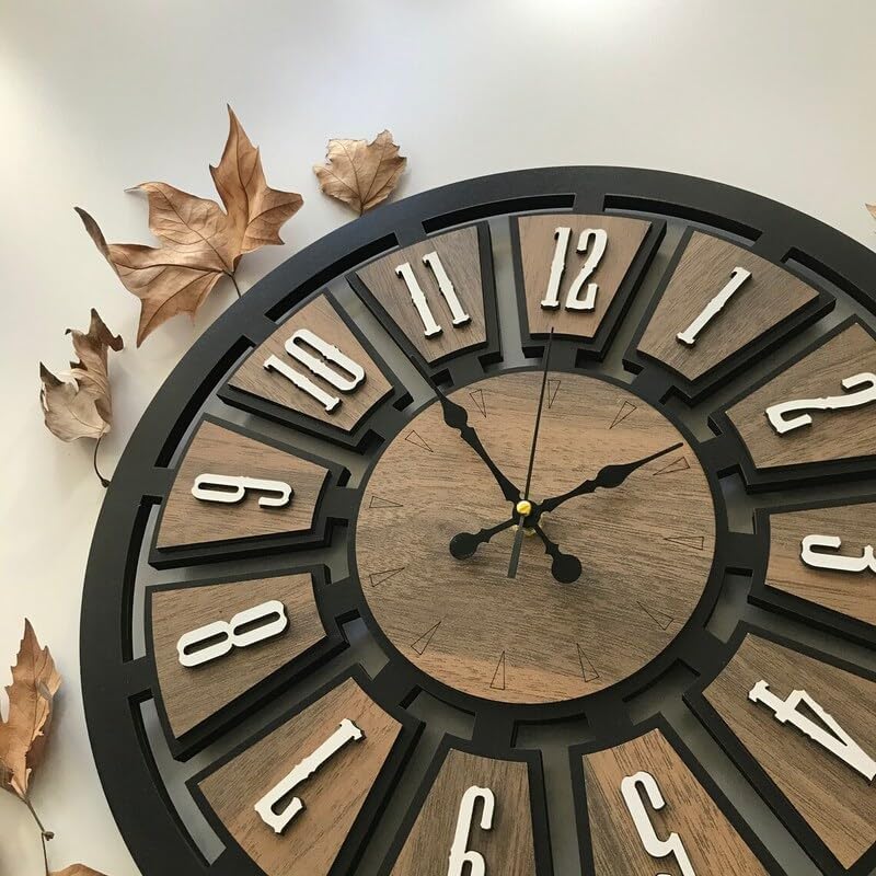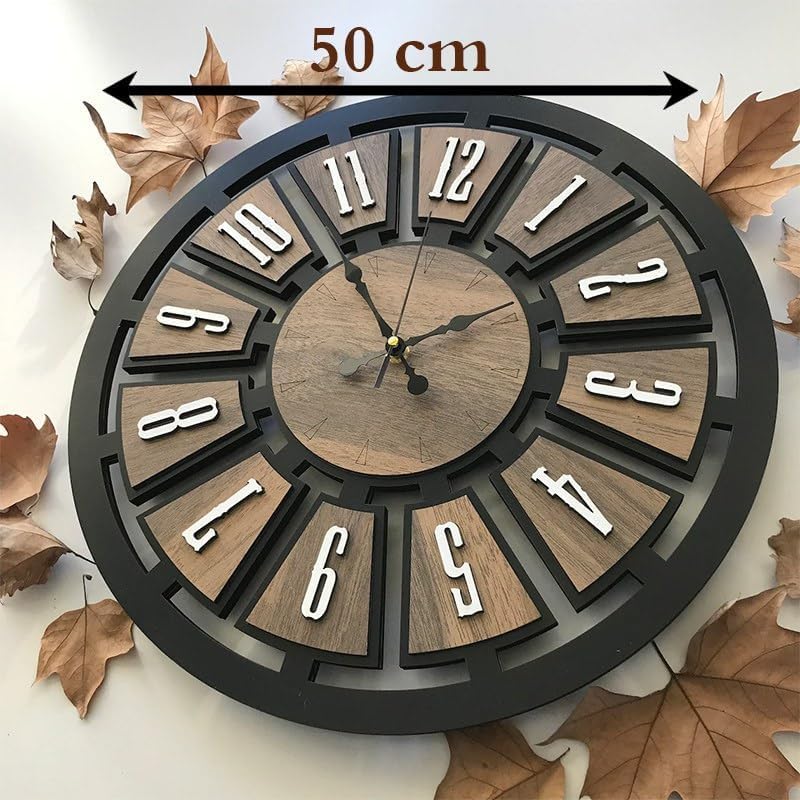 Home Gallery - ساعة حائط ريترو، 50 سم، من هوم جالاري، خشب مُصنع، بني، تناظري